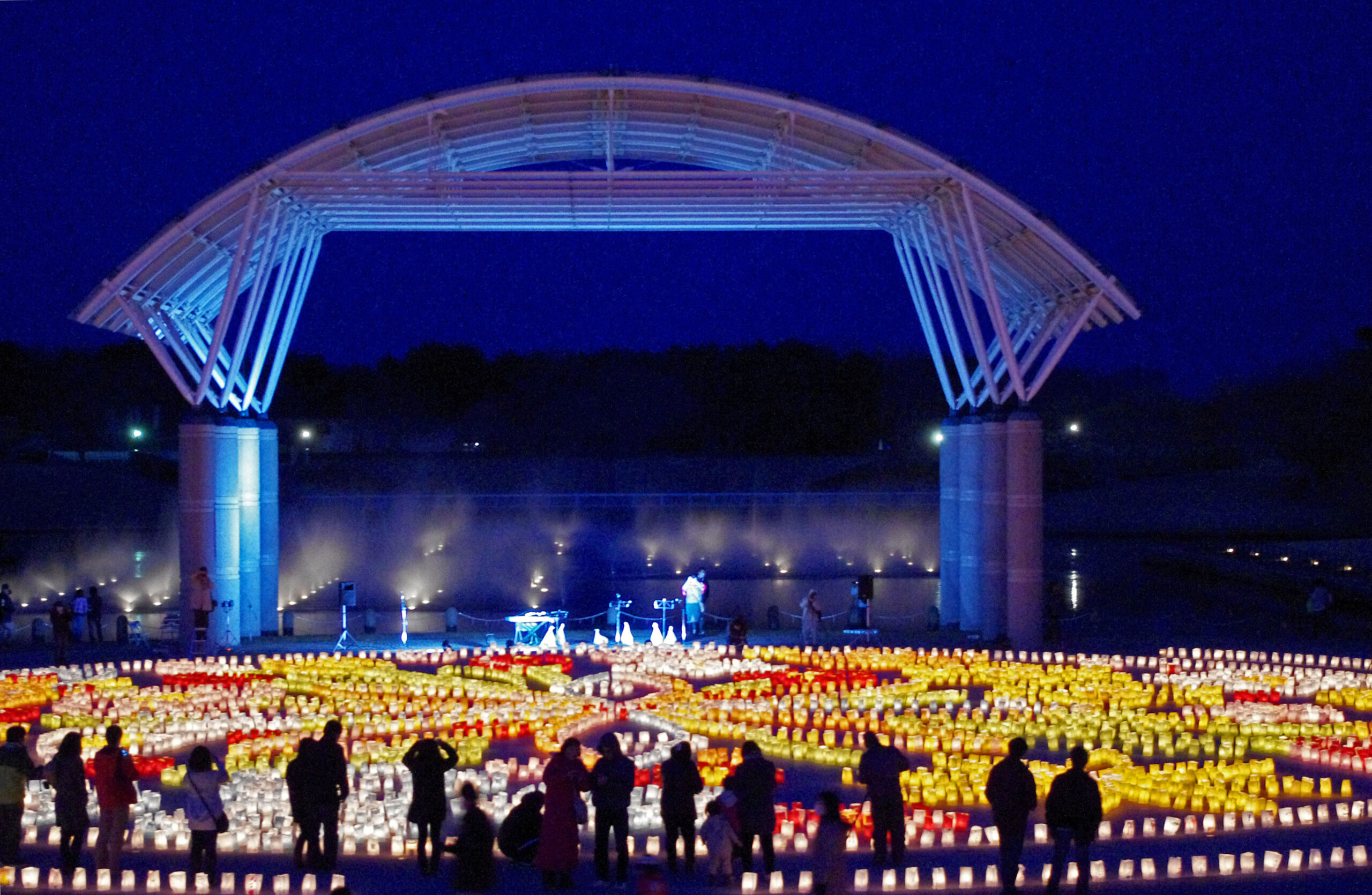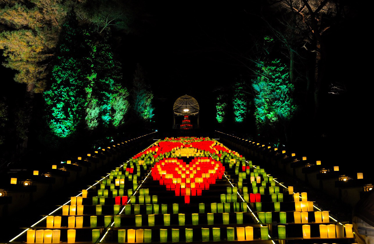 煌めく灯りの揺らめきは、単なる光の演出にとどまらず、自然と調和し、壮大な地上絵となります。