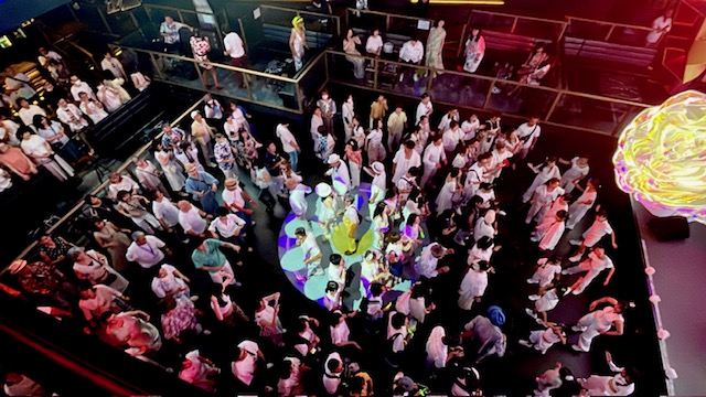 また来場者には白を基調としたファッションでの来場を呼び掛け、フロアで踊る来場者にもプロジェクションマッピングを投射、踊る人もアートとし演出した。高い。
